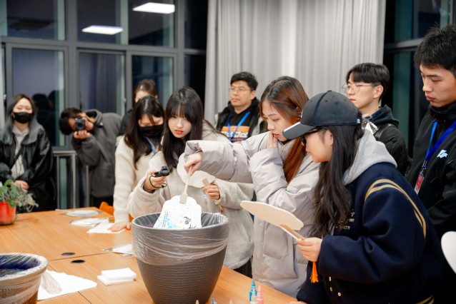 在创意街区,双方师生代表共同种下了象征两岸青年友谊长存的“同心树”。学校还精心组织了非遗文化“漆扇DIY”体验活动,创意设计学院吕姿璇现场讲解了漆扇的历史渊源、制作工艺及文化内涵并指导同学们如何制作漆扇。随后,两岸师生共同探索传统工艺魅力,亲手绘制属于自己独一无二的漆扇,感受了中华传统文化的深厚底蕴和传承价值。