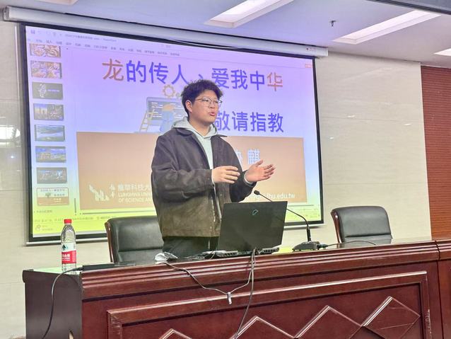 随后,尹协麒主任为来自信息工程学院与经济管理学院的100多名学生带来了一场精彩生动的讲座。他向同学们详细阐述了台湾教育发展现状,介绍了龙华科技大学以及交流交换项目,并热情展示了台湾的风土人情、特色美食及在台师生的各式联谊活动,现场的同学们互动积极,反响热烈。经济管理学院市场营销2232班的刘翔同学作为交换生代表,倾情分享了在龙华科技大学交换期间的学习与生活体验。他详细介绍了在龙华科大参与的各项活动,畅谈对台湾文化的认知与感受,并鼓励学弟学妹们珍惜当下,勇敢尝试,增长见识。