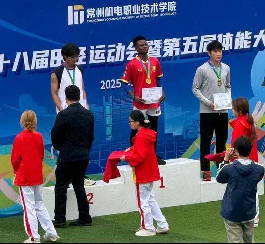 比赛期间,国际教育学院的运动健儿们以饱满的热情、坚韧的毅力以及出色的竞技水平,生动诠释了“更高、更快、更强、更团结”的奥林匹克精神。跑道之上,几内亚籍学生苏南龙健步如飞,勇夺400米桂冠;投掷区内,喀麦隆籍学生陆文杰力贯千钧,以完美一掷锁定铅球冠军。两位留学生运动员以截然不同的方式,同样诠释了拼搏的体育精神。他们不仅追求个人荣誉,更注重团队协作与体育道德的展现。其中,马洛夫、苏南龙两位同学凭借出色的表现和高尚的体育精神,荣获了体育道德风尚奖。