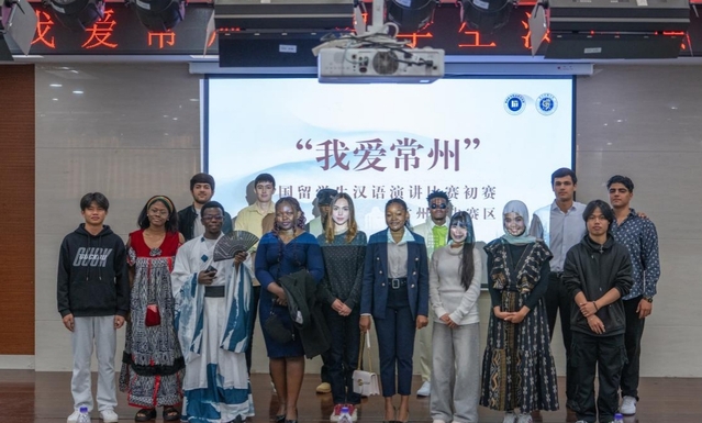 2025年11月28日下午,由常州市人民政府外事办公室、常州市人民政府新闻办公室、常州市教育局、常州市文化广电和旅游局联合主办的2025年“我爱常州”外国留学生汉语演讲大赛初赛,在我校蓝厅顺利举行。