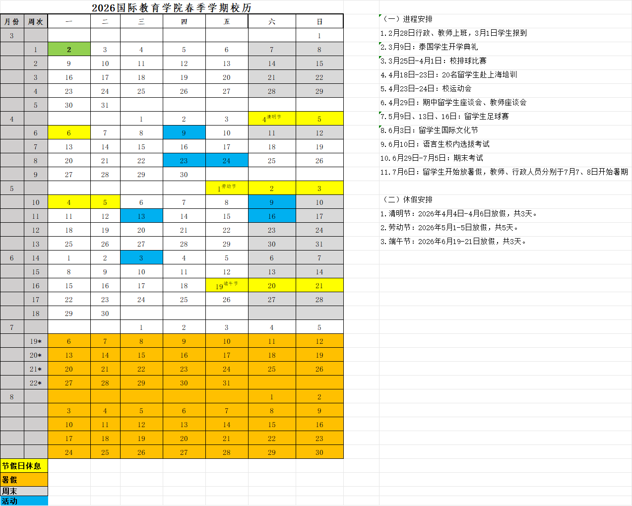 2026国际教育学院春季学期校历