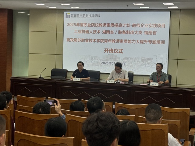 我校举办2025年职业院校教师素质提高计划国家级培训及委托培训项目开班仪式 发布时间:2025-07-08 文章来源:继续教育 7月7日上午,由信息工程学院、电气工程学院承办的2025年湖南省职业院校教师素质提高计划-教师企业实践(工业机器人技术)、福建省职业院校教师素质提高计划-教师企业实践(装备制造大类)及克孜勒苏职业技术学院青年教师素质能力大提升专题培训开班仪式在我校图书馆紫厅举行。继续教育学院院长施皓、信息工程学院院长楼竞、电气工程学院副院长谢小敏,培训班班主任、工作人员及参训学员100余人参加开班仪式。仪式由我校电气工程学院副院长谢小敏主持。 施皓致辞。他简要介绍了常州市、科教城和学校的基本情况。他表示,学校科学统筹,扎实推进,严格落实项目办及委托单位的有关要求,充分调动和整合优质教育教学资源,精心设计培训课程,努力推进培训项目在我校高质量实施,希望各位学员学有所获,互通有无,保质保量完成此次培训任务。 授课教师代表、信息工程学院楼竞发言,他希望学员们转变角色、调整心态、克服困难、遵章守纪,他承诺将认真落实培训要求,多渠道多维度地帮助学员们提升专业能力。学员代表、湖南劳动人事职业学院姚培老师表示,将珍惜这次难得的机会,积极转变角色、遵守学习纪律、端正学习态度,不断提高自身专业化水平和教育教学能力,高质量完成培训任务。 开班仪式后,我校组织部、统战部部长彭银年作题为《新时代产教融合路径研究与实践》的开班第一讲。 |