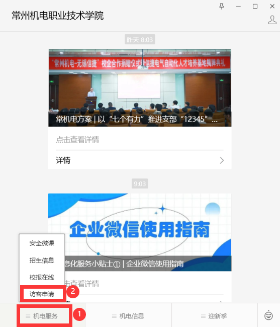 请使用微信“扫一扫”扫描以下二维码或者点击“常州机电职业技术学院”微信公众号的【机电服务】