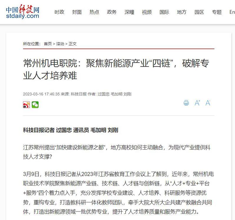 常州机电职院:聚焦新能源产业“四链”,破解专业人才培养难