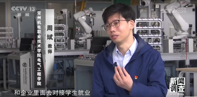 央视《新闻调查》栏目深度报道我校产教融合赋能城市发展 发布时间:2023-05-08 作者: 访问次数:1248 5月6日晚,央视《新闻调查》栏目对常州产教融合模式进行了深度报道,我校校长许朝山,电气工程学院党总支书记周斌、院长蒋庆斌等接受了采访。 《新闻调查》是中央电视台唯一一档深度调查类节目,时长45分钟,每周一期,有着广泛的影响。本期节目介绍了我校尤其是工业机器人专业如何实现教育供给侧和产业需求侧同频共振,为产业提供高素质的技术技能人才。 学校坚持办学方向随着产业发展而动,顺应企业人才需求而转,适应市场需求变化而变,真正实现了专业设置与产业需求同频共振。 近年来,学校围绕智能制造产业链、技术链、创新链、人才链,融合人工智能与先进制造技术,主动对接常州市智能制造、机器人、新能源等重点产业链中高端技术与人才需求,共建人工智能与先进制造工业中心和“共享工厂”等产教融合集成平台。行业指导、校企协同,牵头成立全国机械行业工业机器人职教集团、江苏模具智造人才培养联盟等智能制造领域5大职教集团(联盟)。内外联动、校企融通,共建智行机器人产业学院、人工智能产业学院等5大产业学院。多点布局、功能集成,持续打造高水平“立体化”校企合作基地,博士工作站、大师工作室等产教融合平台和载体。全面升级“校内智能制造产教园+校外校企合作工作站”内园外站产教合作功能,推进“一群一行业、一专一名企、一师一方案、一生一专项”四维一体产教合作模式与创新实践,形成“内园外站、四维一体”产教融合常州新模式,建设“人才共育、基地共建、人员互聘、信息共享、协作服务和文化交融”产教融合六大运行机制,全面构筑校企命运共同体。 (供稿:陈翼;编辑:孙晓瑨;审核:毛加明)
