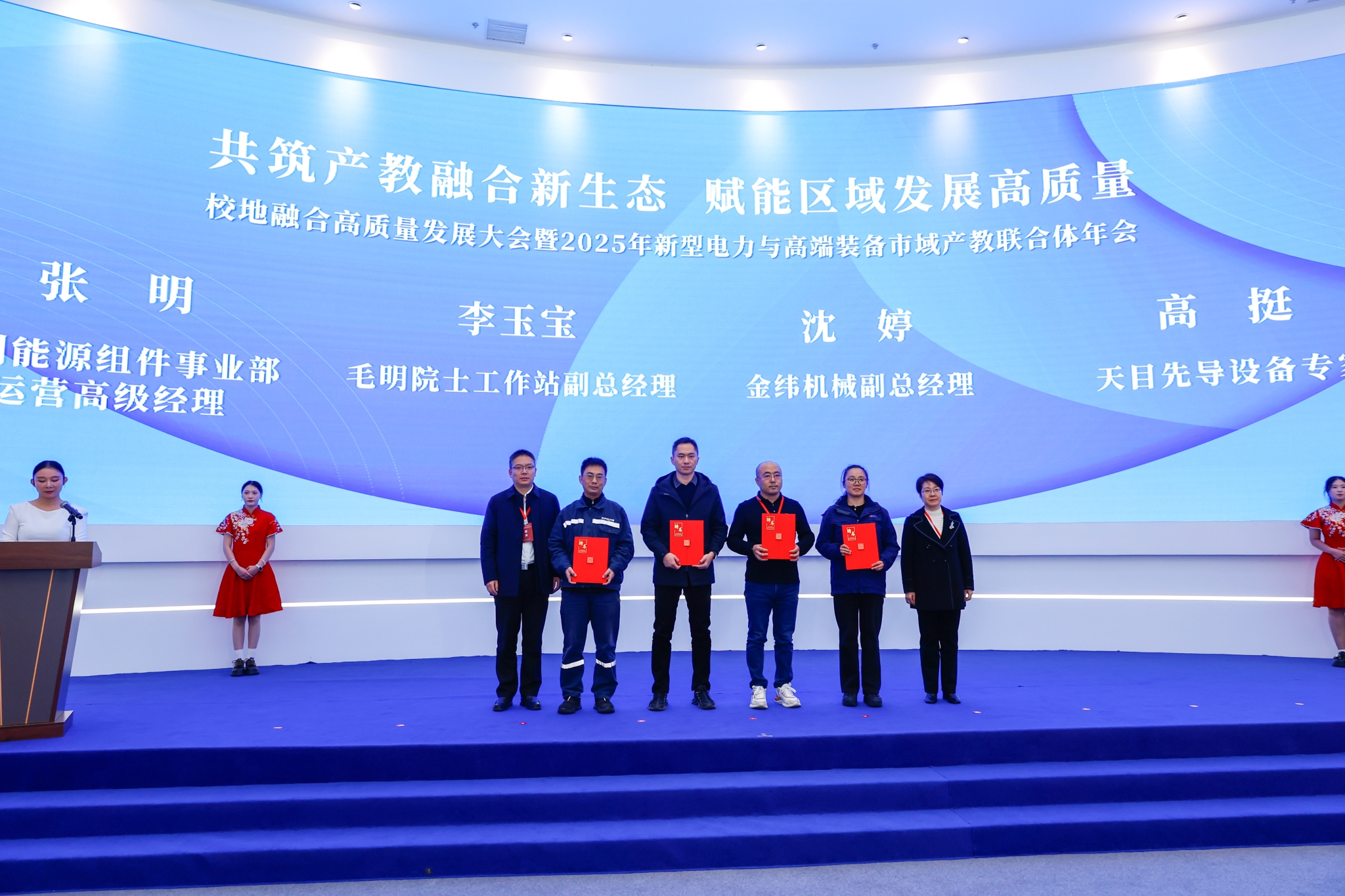 校地融合高质量发展大会暨2025年新型电力与高端装备市域产教联合体年会在溧阳召开 发布时间:2025-12-15 作者:史重庆 访问次数:10 12月12日,校地融合高质量发展大会暨2025年新型电力与高端装备市域产教联合体年会在江苏智能无人装备产业创新中心举行。本次大会以深化校地融合、强化产教协同为核心,凝聚政校企三方合力,共绘高质量发展新蓝图。 溧阳市委常委、溧阳高新区党工委副书记、管委会主任朱威,溧阳市人民政府副市长丁红,溧阳高新区管委会副主任施雪芹,我校党委书记许朝山,党委副书记、校长刘畅,副校长周庆元出席,联合体企业及院校代表100余人参加会议。 朱威在致辞中强调,产教融合是园区培育新质生产力、推动高质量发展的必由之路,溧阳高新区将与院校、园区企业及科创平台深化协同、携手共进,共同打造长三角产教融合新高地。他表示,将以本次大会为起点,推动产教融合、校企合作向更深层次、更广领域发展,为溧阳高质量发展注入更加强劲、更加持久的创新动能和人才势能。 许朝山致辞中回顾了学校下沉县域与溧阳高新区校地共建产教融合基地,在人才共育、平台共建等方面取得的成效。他表示,产教融合是职业教育的生命线,校地协同是高质量发展的动力源。学校将以市域产教联合体为重要载体,持续深化“产业集群-专业集群”联动机制,推动人才培养、技术研发与产业需求深度融合,努力打造扎根地方、服务产业、协同创新的职业教育高质量发展样板,为溧阳乃至长三角区域发展注入更可持续、更高质量的“职教动能”。 金纬机械董事长何海潮作为园区企业代表发言。他表示企业始终将人才培养置于战略高度,2025年在溧阳高新区的精准对接下,金纬机械与常州机电职业技术学院深度合作,组建现场工程师金纬班,定向培养契合产业需求的专业人才,破解企业招才难、育才贵的痛点,也为学生搭建起“入学即入职、毕业即成才”的成长通道,实现政府、企业、学校三方共赢。公司将持续深化产教融合内涵,与更多院校开展订单式培养、产学研合作,让更多技术人才在金纬机械成长成才。 大会同步举行了多项校企合作项目签约与揭牌仪式,为深化产教融合再添新动能。刘畅作为学校代表启动“青春留常”溧阳工作站。周庆元、施雪芹以及联合体内企业代表共同启动联合体产教融合实践基地。丁红为4位联合体受聘产业教授颁发聘书。我校与毛明院士工作站、平陵集团等园区内企业与科研院所共同签订数据要素运营产教融合创新平台、人工智能园区管理运营平台、电机测试实验室、智能无人运载装备产业科普基地、现场工程师人才培养项目合作共建协议。 活动期间,中国科学院自动化研究所研究员潘春洪、易航新能源创始人钟子骅分别围绕人工智能与智能运载装备数字化平台作专题报告,为进一步推进产教融合工作提供了思路和方向。 会议还同期举办了智能运载装备产业企业家沙龙暨未来技术产业学院建设研讨会,共话产业与教育深度融合的发展路径。国家领军人才、毛明院士工作站校企合作项目总监郭建英被聘为我校智能运载装备未来技术应用学院特聘教授。 学校将持续深化产教城融合,园校企协同,持续加强市域产教联合体内涵建设,深化“四个合作”,构建“企业需求牵引、学校人才培养、园区产业升级”的良性循环,为区域经济高质量发展提供坚实支撑。